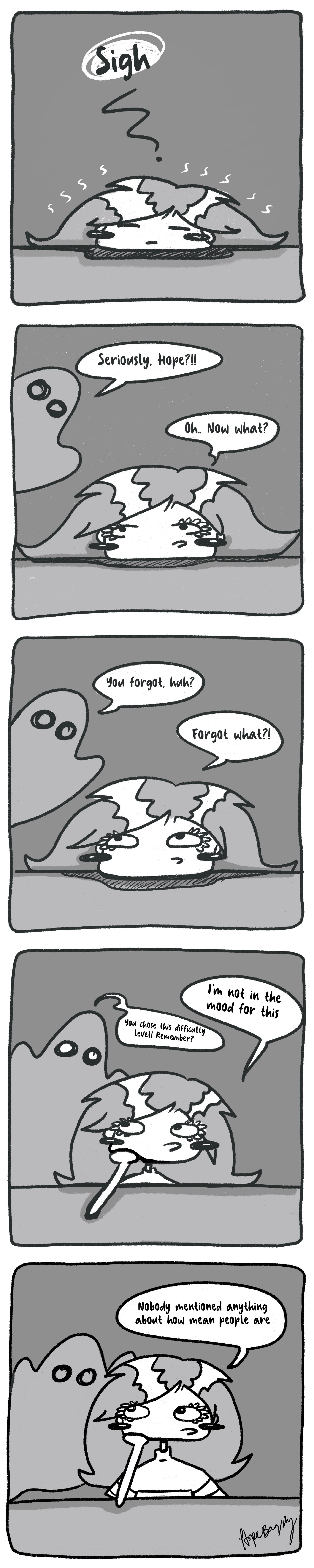 Comic 43: Difficulty Options Don’t Come with Warning Labels HopeBaqshy comics August 16, 2020 1 Minute Share this: Click to share on X (Opens in new window) X Click to share on Facebook (Opens in new window) Facebook Like Loading... Published August 16, 2020