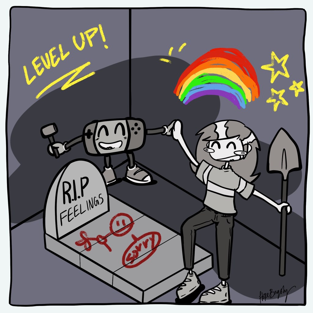 Comic 45: R.I.P Feelings HopeBaqshy comics November 16, 2020 1 Minute Share this: Click to share on X (Opens in new window) X Click to share on Facebook (Opens in new window) Facebook Like Loading... Published November 16, 2020