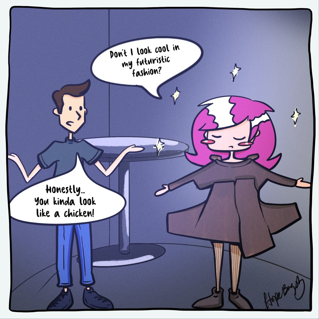 Comic 49: “Futuristic Fashion” HopeBaqshy comics November 16, 2020 1 Minute Share this: Click to share on X (Opens in new window) X Click to share on Facebook (Opens in new window) Facebook Like Loading... Published November 16, 2020
