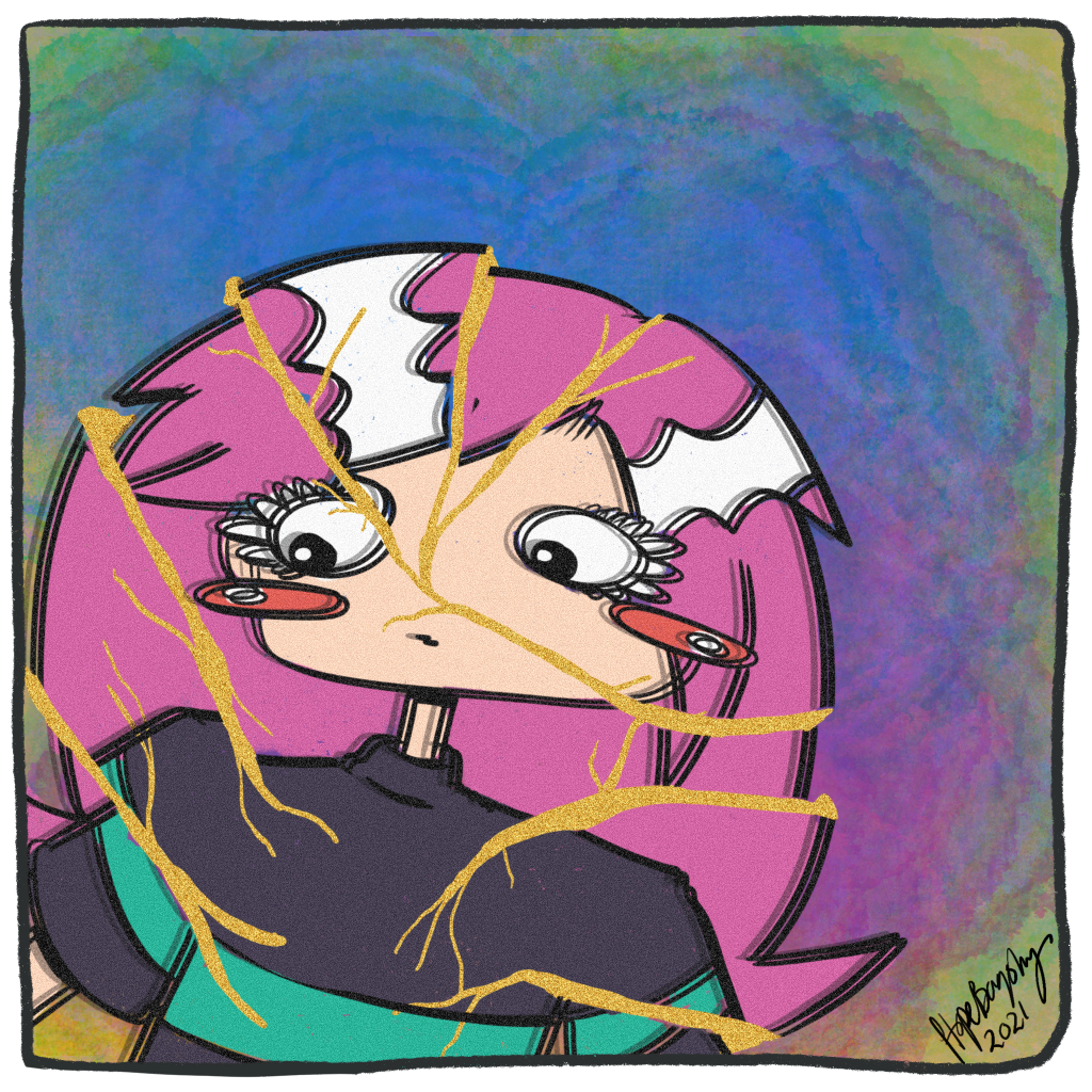 Comic #64: Kintsugi HopeBaqshy comics October 19, 2021 1 Minute Your imperfection makes you more beautiful. Published on July 21, 2021 Share this: Click to share on X (Opens in new window) X Click to share on Facebook (Opens in new window) Facebook Like Loading... Published October 19, 2021